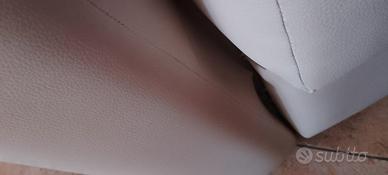 divanetto in simil pelle colore bianco due posti misure 1'35 lunghezza, 66cm larghezza ...con segni di usura come si vedono in foto . un pioggia mano leggermente usurato ma facilmente sistemabile come si vede in foto .piccolo ideale per piccoli spazi €50