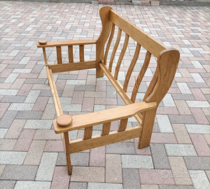 Divanetto in legno di Faggio, due posti, sedili sfoderabili. Ingombri, larghezza 140, profondità 80, altezza schienale 88. Solo ritiro in loco.