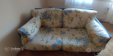 Vendo divanetto a due posti con cuscini in piuma. Rivestimento scocca da rifare