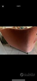 Divanetto + poltrona abbinati in velluto rosa, cuscini imbottiti di piume d'oca, antico originale.