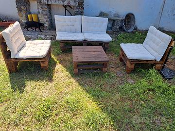 divanetto e poltrone di pallet per terrazzo o giardino + tavolino.