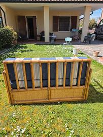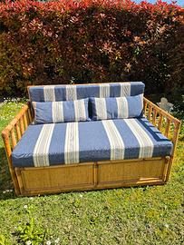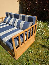 divanetto in bamboo, perfette condizioni, stabile e molto solido. cuscineria nuova, completamente sfoderabile. misure 130cmx80cm. altezza schienale 78cm Ritiro di persona a Ferrara (vicino a Cona)