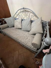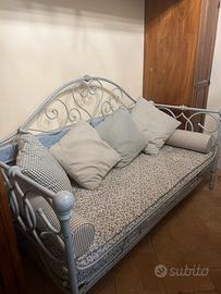 Dormeuse antica verniciata bianco celeste delabré con imbottiti: materasso e cuscini vari
