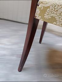 Divanetto in stile inglese in vero legno di mogano con seduta Imbottita con tessuto damascato di colore verde salvia