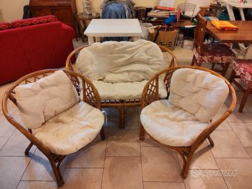divanetto in vimini con due poltroncine
