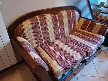 Divanetto legno e tessuto, con due cassetti adatto per casetta mare o montagna , ottimo stato