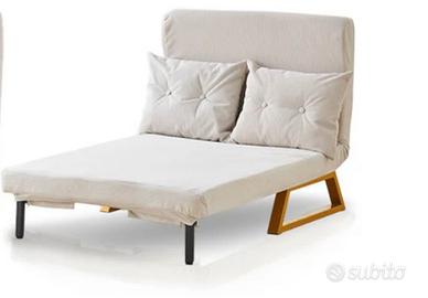 Vendo divanetto a 2 posti che diventa un letto di una piazza ampia e molto comodo in velluto color panna con 2 cuscini. Mai usato. Da ritirare a piano strada