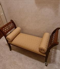 Divanetto con cuscini da ingresso perfetto recentemente rifoderato misure lunghezza cm 84, altezza fino alla seduta cm 30 fino in alto con la parte in legno cm 65, profondità cm 36.