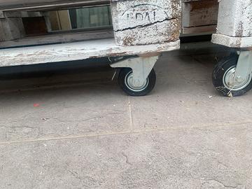 Divanetto pallet EPAL. Bianco dipinto con chalk paint. Con ruote piroettanti e bloccanti Misure 120*60 Altezza schienale 45 Altezza da terra 42. Disponibili 3 pezzi