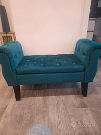 Vendo divanetto contenitore velluto color petrolio mai utilizzato. Dimensioni 60x40x100. Ritiro a mano.