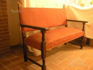 - DIVANETTO-PANCA 1930 formato da una struttura in legno tipo noce, seduta imbottita a molle e rivestimento in tessuto damascato colore rosso bordeaux, spalliera imbottita con uguale rivestimento; dimensioni: lunghezza cm.134, larghezza cm.68, altezza spalliera da terra cm.105, altezza seduta cm.50, altezza braccioli da terra cm.67.