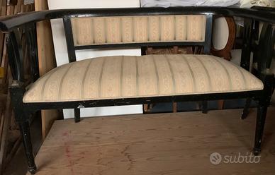 Divanetto con due poltroncine e quattro sedie da restaurare.