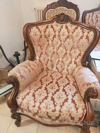 Divanetto e due poltrone con stoffa damascata colore rosso. Come nuove. Ritiro a carico dell'acquirente. Zona San Miniato Siena