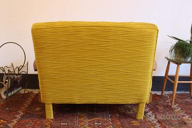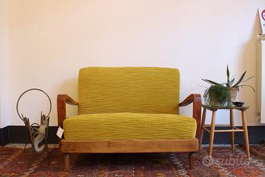 Vendo divanetto stile vintage degli anni 40/50 con struttura in legno e imbottitura completamente rifatto. Il divano è stato rivestito con elegante tessuto senape da artigiano specializzato. Tutti i componenti sono originali. È stato fatto un trattamento a microonde per i tarli, il molleggio originale (con molle in telaio di ferro) è stato restaurato con gommalacca a tampone e cera. Misure Larghezza 109 come Profondità 70 cm Altezza 77 cm Prezzo in privato. Il divanetto si trova a Brescia ed è disponibile per il ritiro a mano. Eventuale spedizione da definire, a carico dell’acquirente.