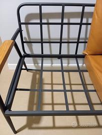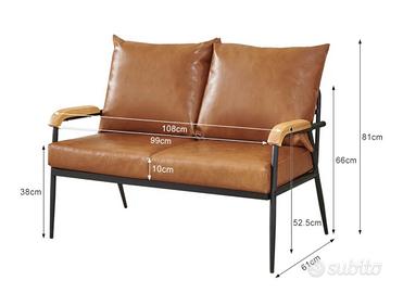 Un piccolo divano che arreda qualsiasi ambiente con originalita' e design. La struttura e' in metallo verniciata a polvere e i cuscini rivestiti in ecopelle sono confortevoli e pratici. I braccioli sono in legno, stretti e pratici. Misura solo cm. 108 x 61 x 80. Si smonta e si assembla in pochissimo tempo per un eventuale trasporto molto comodo. In condizioni perfette, vendo per inutilizzo.