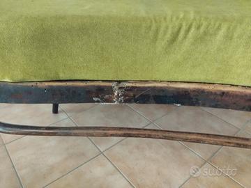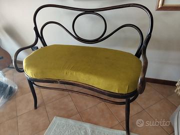 Vendo divanetto thonet con seduta fatta nuova ,il telaio in legno è stato riparato e rinforzato come da foto ,pezzo d'antiquariato restaurato e rimodernato.
