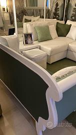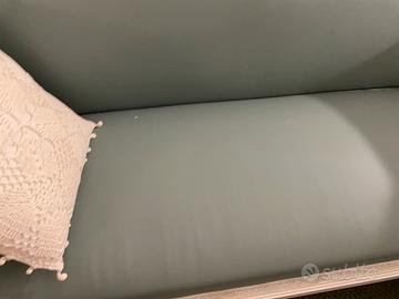 Divanetto in ecopelle verde salvia. Appena restaurato ma purtroppo devo lasciarlo per motivi di spazio. Mis. 173x62 Vendo solo a chi viene a prenderlo personalmente. No corrieri.