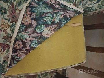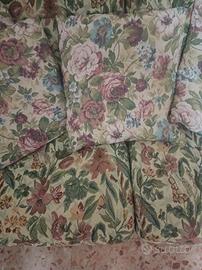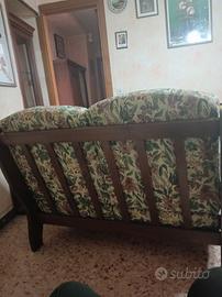 Divanetto vintage 2 posti con struttura in legno. Usato in condizioni più che buone, sedute e schienali sfoderabili, 4 cuscini piccoli sfoderabili. Lunghezza cm 125, profondità 80, altezza compreso schienale 80. Ritiro presso Iseo BS