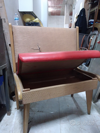 Divanetto vintage con contenitore e seduta rivestita da restaurare. L 76 H 92 P 47