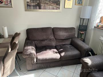 Vendo set di divani composto da 1 divano 3 posti + 1 divano 2 posti, in tessuto microfibra effetto scamosciato, colore marrone/tortora.
