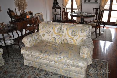 Divani 2 e 3 posti in tessuto veneziano, imbottiti in piuma; belli e comodissimi. Anni 80, tenuti benissimo. Info in privato