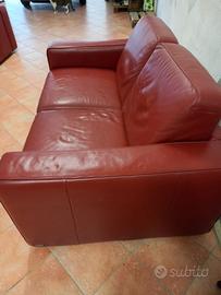 Vendo 2 divani, 2 e 3 posti in vera pelle colore bordeaux, buone condizioni, marca Divani&Divani.