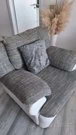 Colore grigio con base chiara, design moderno ed elegante, perfetto per qualsiasi arredamento. Divani comodi, ben imbottiti e struttura solida, sempre mantenuti con cura in ambiente non fumatori.