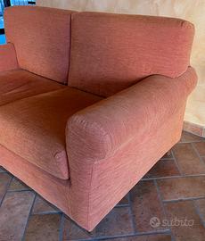 Vendo coppia di divani (3+2 posti) in tessuto arancione. Usati ma tenuti bene, molto comodi e completamente sfoderabili per una facile pulizia. Insieme ai divani regalo le federe dei due cuscini abbinati.