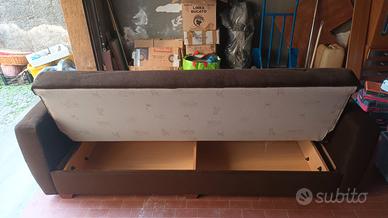 Vendo due divani tre posti e una poltrona in vera pelle verde, quello marrone può diventare letto ed è contenitore. Il secondo è normale la poltrona è in vera pelle verde. tutti in ottimo stato solo da pulire un attimo.