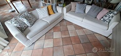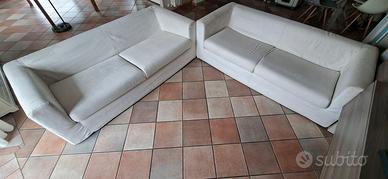 Vendo n. 2 divani 3 posti in tessuto microfibra ETIENNE colore bianco luna chiaro. Completamente sfoderabili e rivestimento lavabile in lavatrice. Comodi e veloci da smontare e rimontare. Fissaggio con velcro. Larghezza cm. 190, profondità cm. 85 altezza cm. 65 Prezzo per singolo divano, se acquistati in coppia € 150,00. Eventuale consegna nei dintorni disponibile con rimborso spese, da concordare.