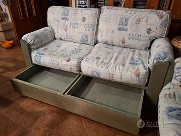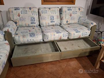 Vendo anche singolarmente divani a 2 e 3 posti. Struttura in legno e comodissimi cassettoni estraibili. Euro 100 quello a 2 posti, euro 120 quello a 3 posti. Euro 200 se presi entrambi