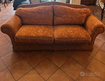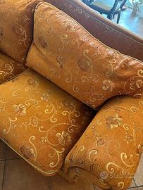 Due divanti antichi con tapezzeria arancione e oro.
