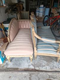 divano e divanetti con decorazioni a mano e bordature antiche