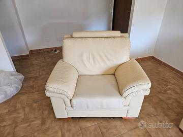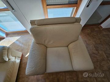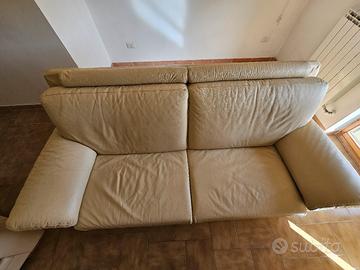Divani beige in pelle in buone condizioni con qualche screpolatura data dall'usura, come si vede dalle foto. Il divano da 3 posti non è divano letto. Le dimensioni sono: