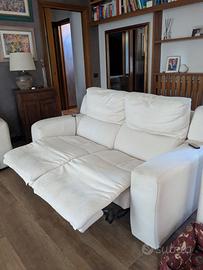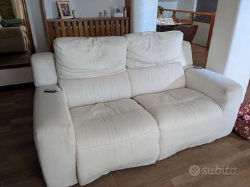 Divano micro fibra lunghezza170cm altezza 90cm profondità 100 cm con poggia piedi elettrico per entrambe le due sedute colore bianco panna.