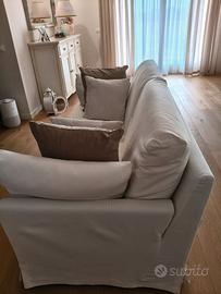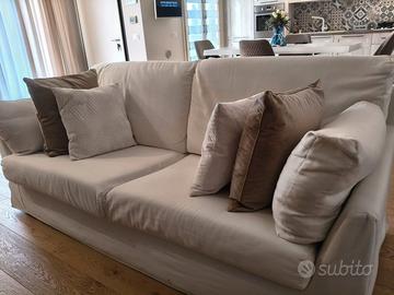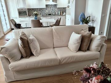 Divani due e tre posti, sfoderabili, colore panna e crema, rivestiti nell'Anno 2022. Tenuti molto bene, il marchio è POLTRONESOFÀ.