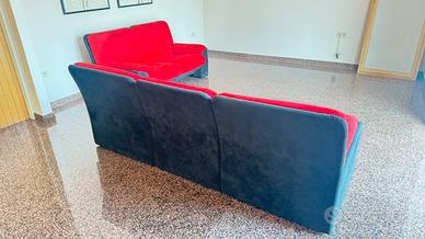 Coppia divani da salotto marca Busnelli in pelle alcantara nero/rosso rispettivamente da 3 e 2 posti. No spedizione.