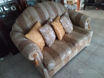 Due divani dall'aspetto identico, a forma di conchiglia, stile classico. Uno dei due è divano-letto a una piazza e mezza