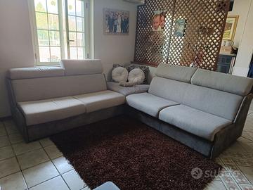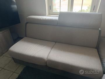 2 divani lunghezza 160 x profondità 98, tessuto tortora chiaro con Alcantara tortora scuro, poggia testa reclinabili. Prezzo trattabile