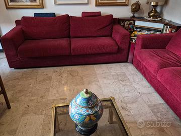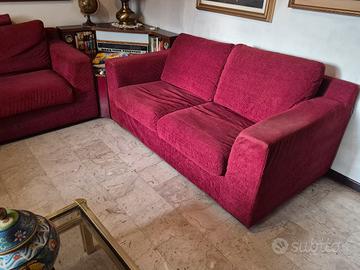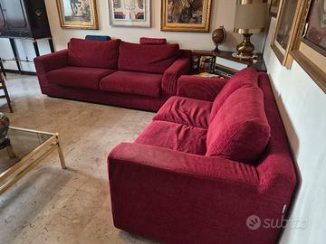 due divani Chateau D'Ax (3+2 posti), in velluto bordeaux a coste strette. Sono usati, ma in buono stato. Interamente sfoderabili e lavabili i rivestimenti. Rinfrescati di recente.