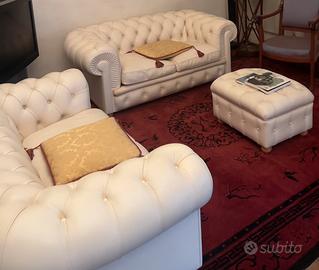 Vendo n. 2 divani Chester originali Poltrona Frau + pouff originale abbinato. Rivestimento in pelle bianca di vitello pieno fiore, cuscini in piuma d’oca. Divani in ottimo stato, poco utilizzati. Misure indicative per divano: L 160 cm – P 91 cm – H 67 cm. 📍 Visione su appuntamento in provincia di Parma 🚚 Ritiro a carico dell’acquirente Prezzo: € 4.500 cad. Offerta: 2 divani + pouff in omaggio € 8.000 totali Per maggiori informazioni non esitate a contattarmi.
