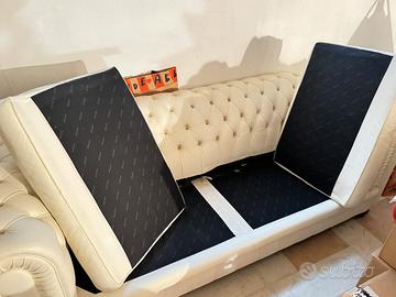 Vendo splendidi divani stile Chesterfield originali Natuzzi, rivestiti in pelle pieno fiore bianca/avorio con lavorazione capitonné.