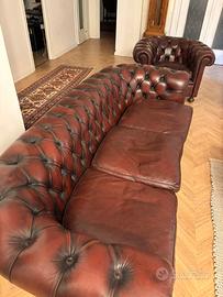 Divani Chesterfield originali Inglesi in pelle Un divano tre posti e due poltrone Cuscini sfoderabili Red con cerniera Ottimo stato