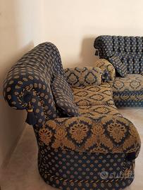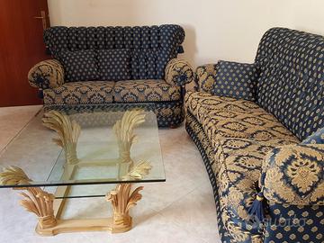 Vendo divani in stile classico, composti da un divano a 3 posti e uno a 2 posti.🛋️ Sono rivestiti in elegante tessuto blu con dettagli dorati e motivi floreali.✨ Include 4 cuscini coordinati per un tocco di classe. 💎 Il set è stato usato solo per pochi mesi ed è in ottime condizioni, con struttura robusta e finiture dorate raffinate.📏 Perfetto per un salotto elegante. 🌿 Prezzo trattabile!📞 Contattami per info o per vederlo di persona!😊