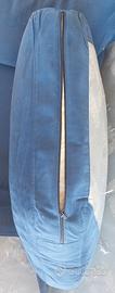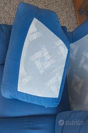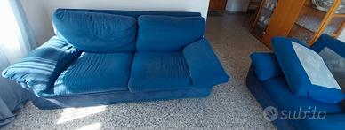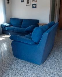 Divani a due posti, con cuscini laterali rimovibili, foderati con tessuto in alcantara blu. Imbottiti in piuma d'oca. Tutti e sei i cuscini, in entrambi i divani, sono sfoderabili tramite cerniere. Struttura in legno. Caratteristiche divano 1: - lunghezza = 161 cm - larghezza = 85 cm - altezza = 80cm Caratteristiche divano 2: - lunghezza = 191 cm - larghezza = 85 cm - altezza = 80cm N.B.La spedizione è a vostro carico!