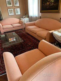 Vendo salotto composta da 1 divano a 2 posti, 1 divano da 3 posti, 1 poltrona. Colore salmone, ottime condizioni. Fabbricato artigianalmente su progetto da disegner. E’ possibile acquisto singolo 100,00 a un posto, 150,00 due posti, 250,00 per tre posti.