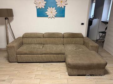 Vendi divano con segni evidenti di usura, macchiato e con un taglio da cucire sulla chaise longue. Apribile per diventare letto. Ma ancora molto comodo. Misure 260x160 x100 cm Colire cappuccino