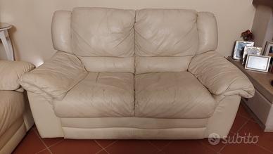 Divano da due e tre posti in pelle in medie condizioni. Buono il telaio. consumata un po' la seduta ma il resto è in buono stato. Comodi.