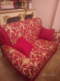 Divani Damascati Rosso e Oro mai usati... Molto Comodi. Da due e Tre posti con cuscini inclusi.