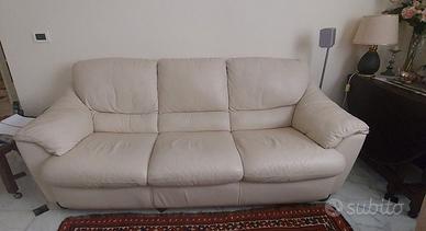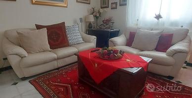 Due divani in ottime condizioni, un 3 posti 210x93x88cm. + un 2 posti 156x93x88cm. Non presentano danni nè macchie di alcun genere. Vera pelle, che si pulisce, in caso di necessità, semplicemente con panno umido e sapone di marsiglia.